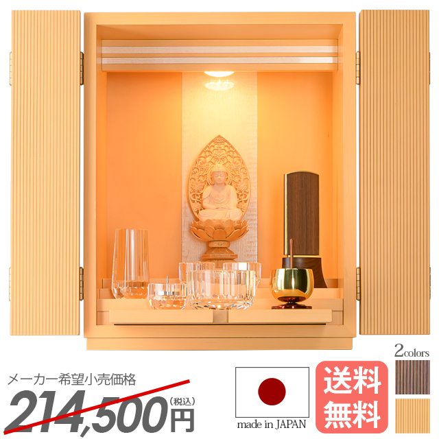 扉部分にはお仏壇にシャープな印象を与える縦の細かいラインが彫られており、お部屋に設置した際にモダンな雰囲気を感じさせます。