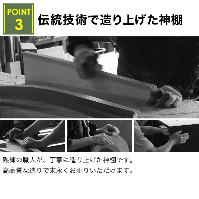 日本産の桧が使われていますので、日本の気候に合い安心して末長くお祀りあただけます。