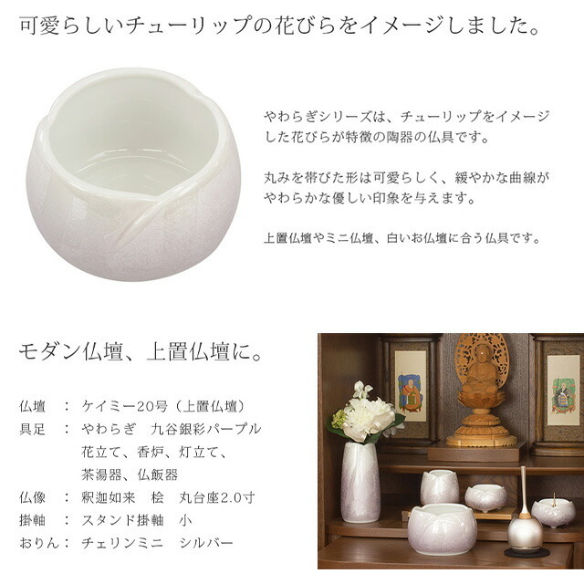 やわらぎシリーズは、チューリップをイメージした花びらが特徴の陶器の仏具です。