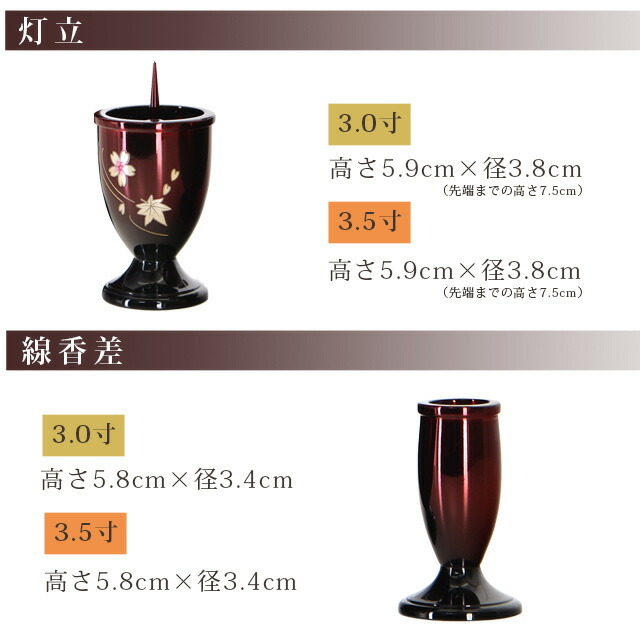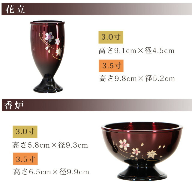 | 花立 | 高さ9.1cm 径4.5cm | 高さ9.8cm 径5.2cm |