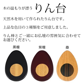 天然木を用いて作られたりん台を3種類、ご用意しました。 お仏壇の雰囲気に合わせてお選びください。