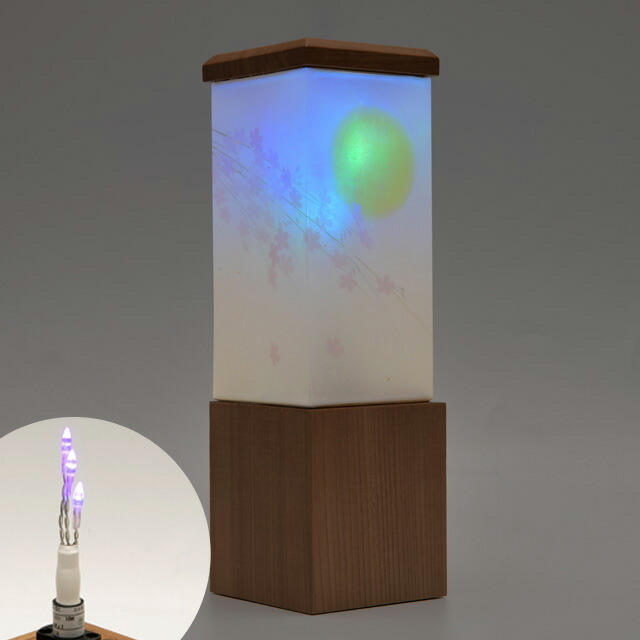 上置き仏壇や手元供養台にちょうどいいサイズのかわいいモダンな置提灯です。七色に色が変化する虹色に光るオーロラ灯が付属します。(電源コード)