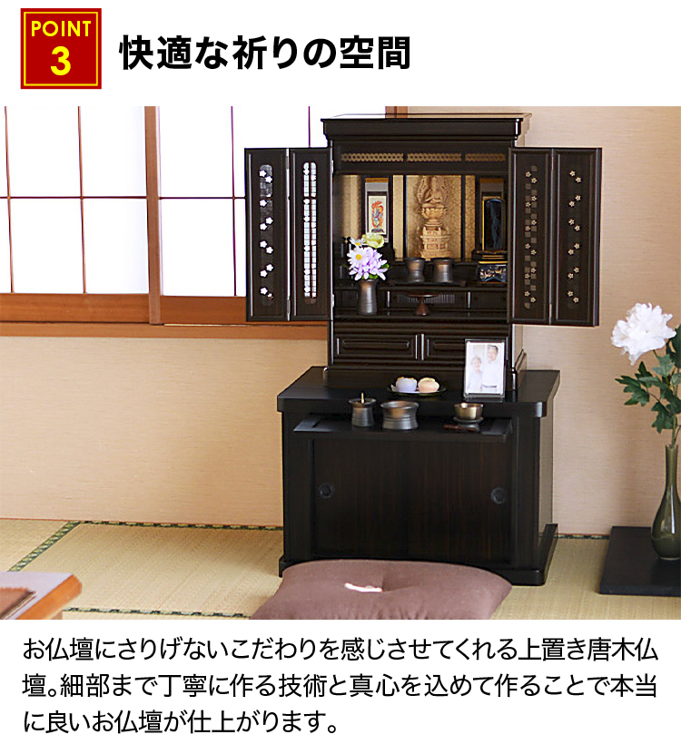 伝統的な手法と機能が融合した国内産のお仏壇です。