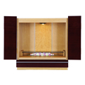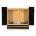 扉に黒檀や紫檀系(パーロッサ)、バーズアイメープルなどを贅沢に使った国産上置きモダン仏壇『アクア2』。